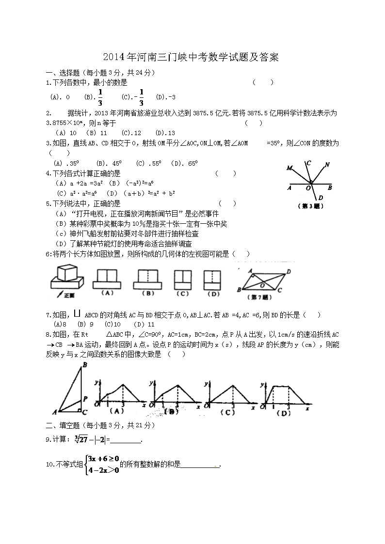 【文档名称】 2014年河南三门峡中考数学试题及答案(Word版).doc