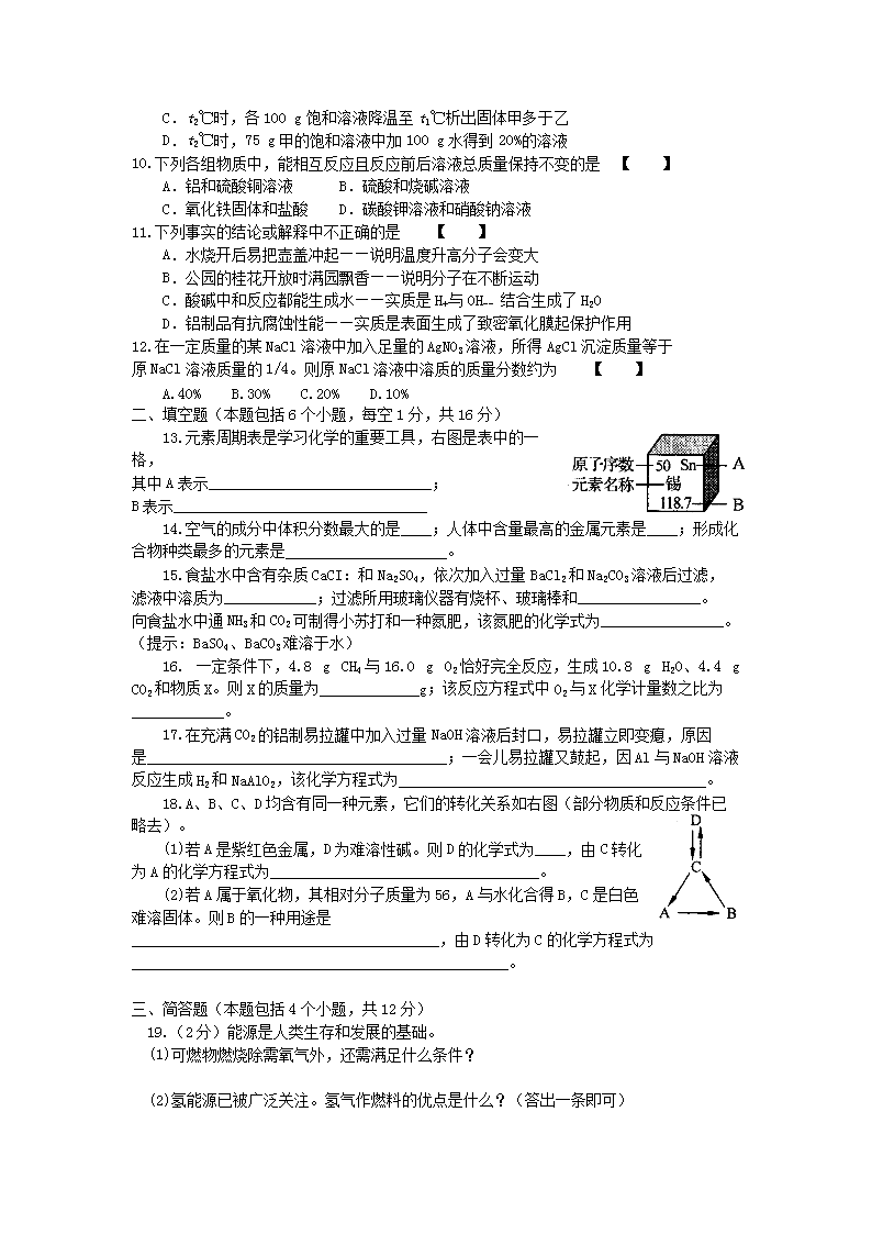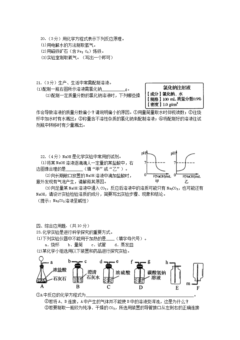 【文档名称】 2014年河南鹤壁中考化学试题及答案(Word版).doc