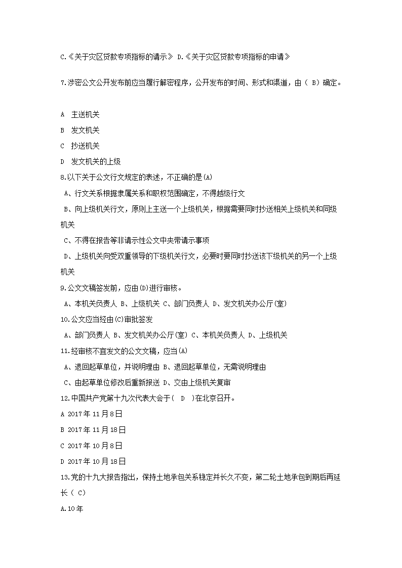 【文档预览】 无忧考网整理发布2017年中国进出口银行行社会招聘行政管理岗笔试真题及答案(Word版),前五页预览如下: