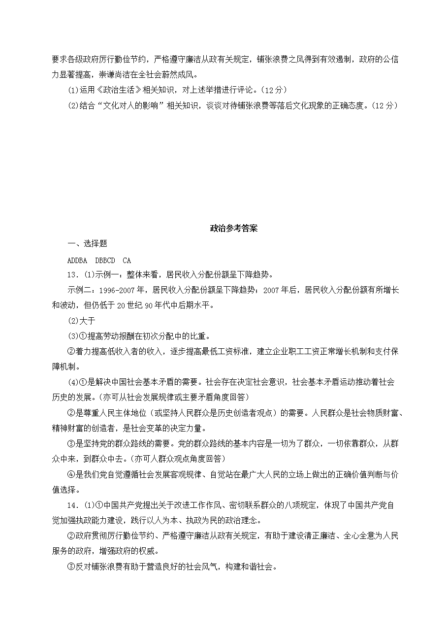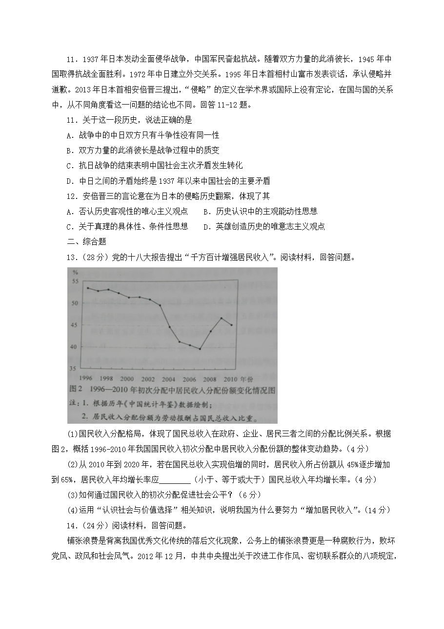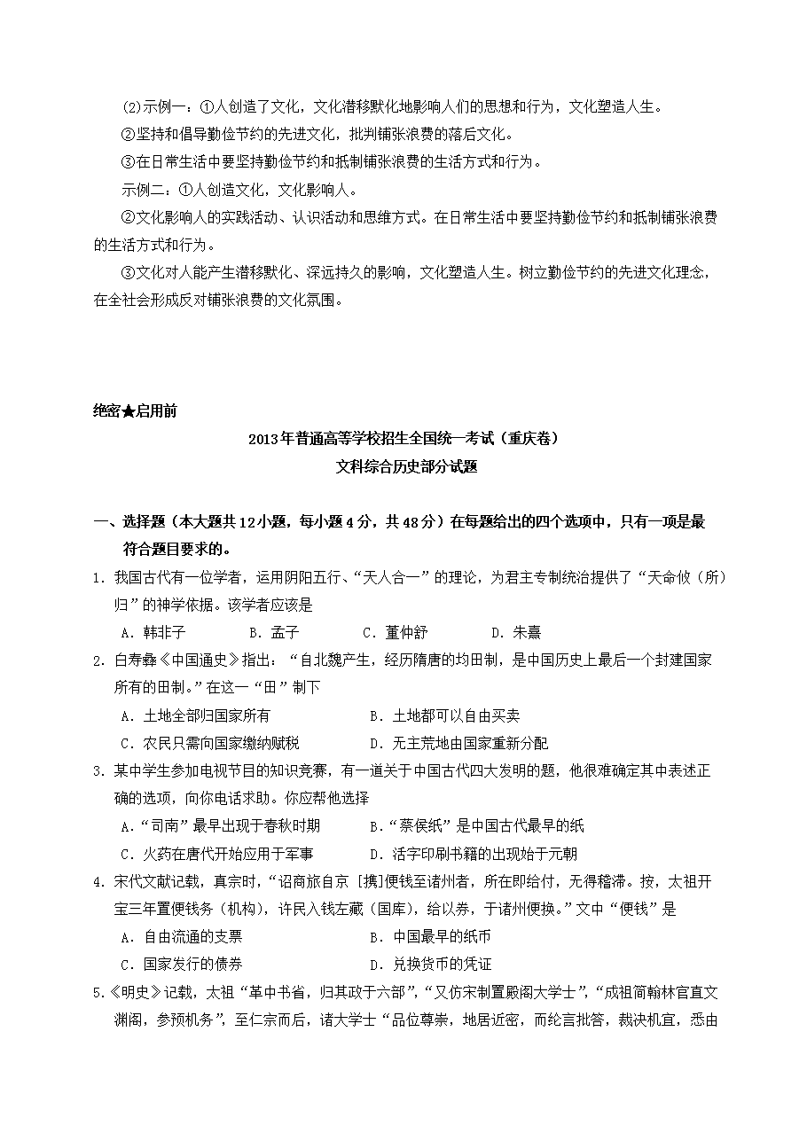 【文档名称】 2013年重庆高考文综试题及答案(Word版).doc