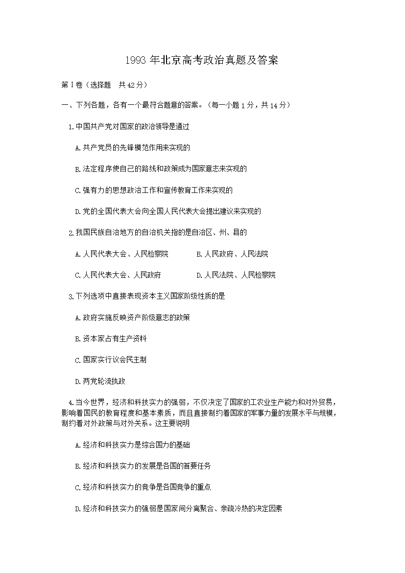 【文档名称】 1993年北京高考政治真题及答案(Word版).doc
