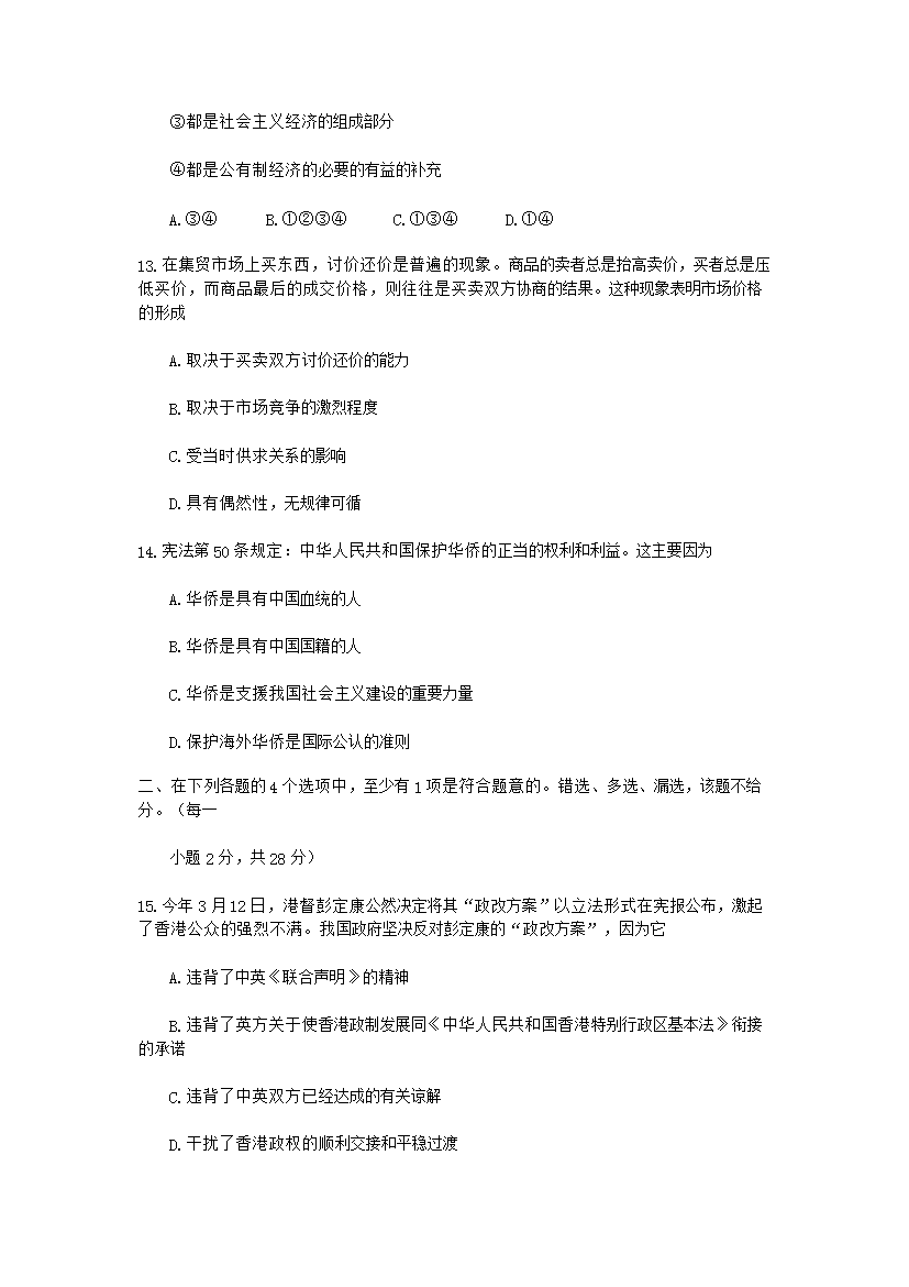 【文档预览】 无忧考网整理发布1993年北京高考政治真题及答案(Word版),前五页预览如下: