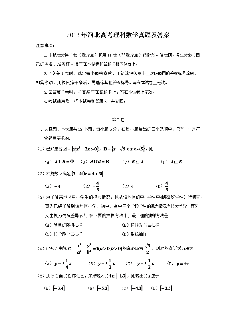 【文档名称】 2013年河北高考理科数学真题及答案(Word版).doc