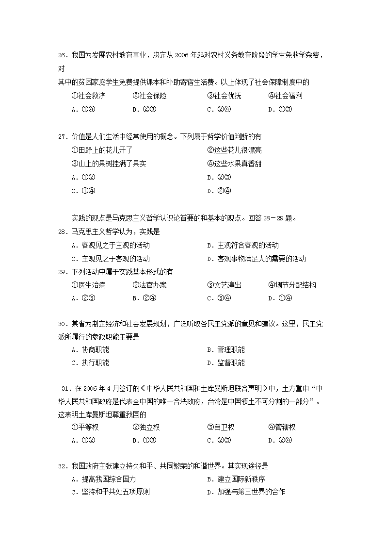 【文档名称】 2006年重庆高考文综真题及答案(Word版).doc