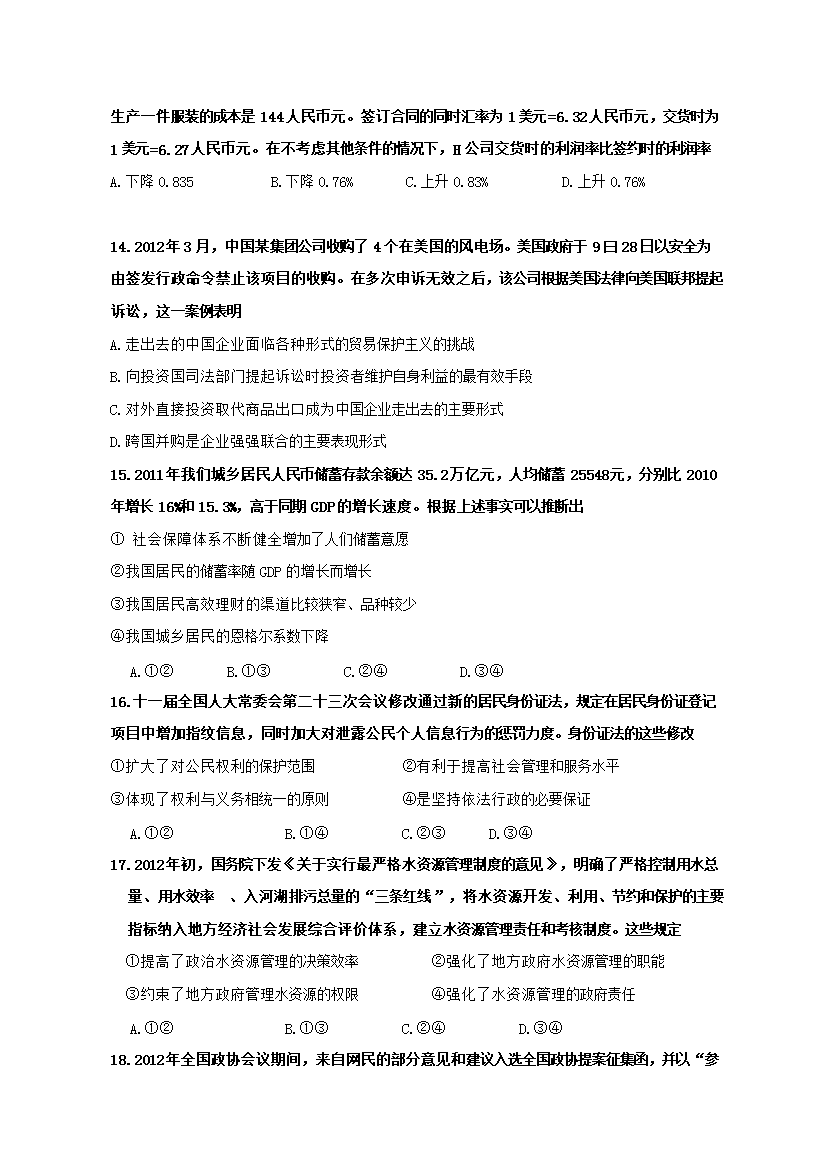 【文档预览】 无忧考网整理发布2013年河北高考文综真题及答案(Word版),前五页预览如下: