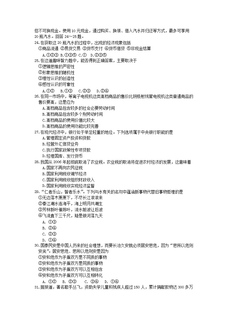 【文档预览】 无忧考网整理发布2006年辽宁高考文综真题及答案(Word版),前五页预览如下: