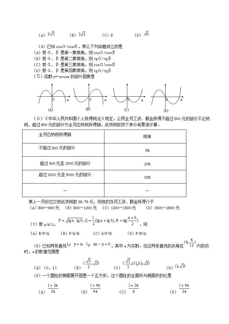 【文档名称】 2000年内蒙古高考文科数学真题及答案(Word版).doc