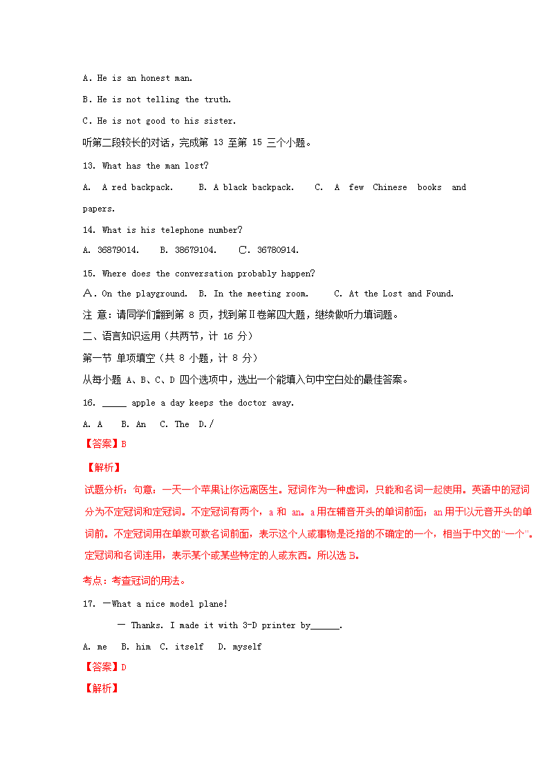 【文档名称】 2016山东省济宁市中考英语真题及答案(Word版).doc