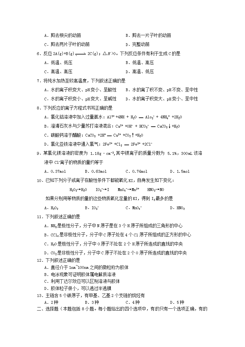 【文档预览】 无忧考网整理发布2006年黑龙江高考理综真题及答案(Word版),前五页预览如下: