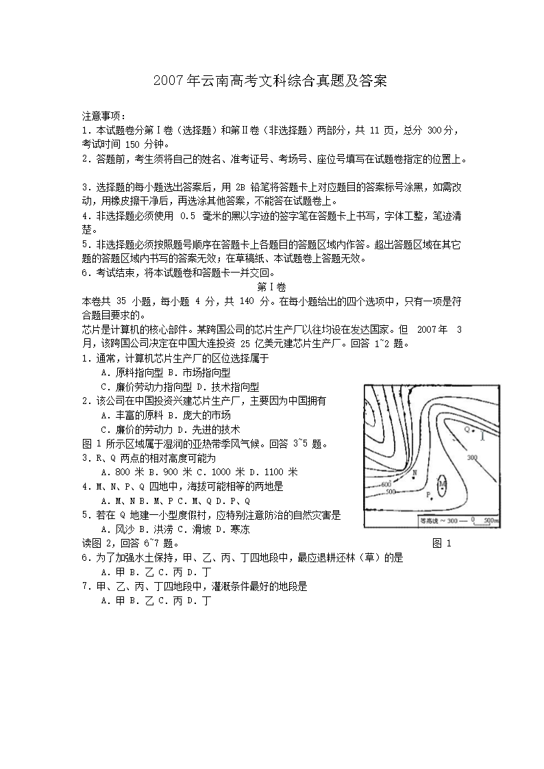 【文档预览】 无忧考网整理发布2007年云南高考文科综合真题及答案(Word版),前五页预览如下: