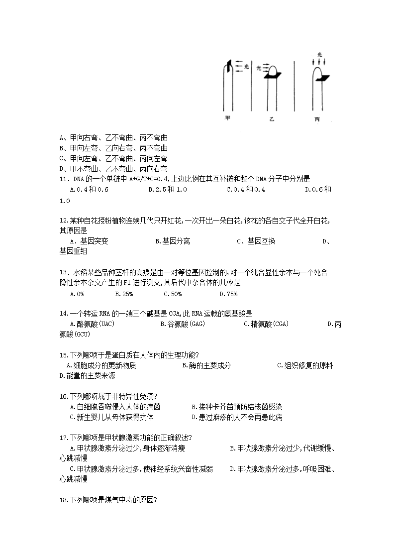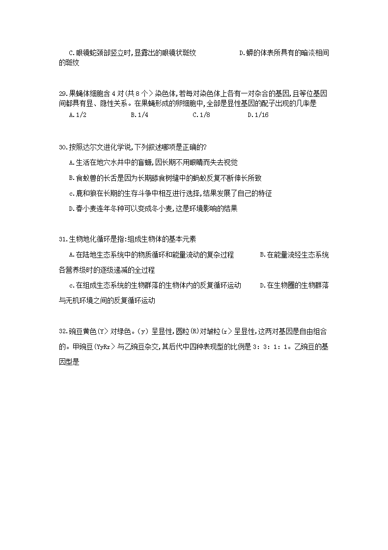 【文档名称】 1991年重庆高考生物真题(Word版).doc