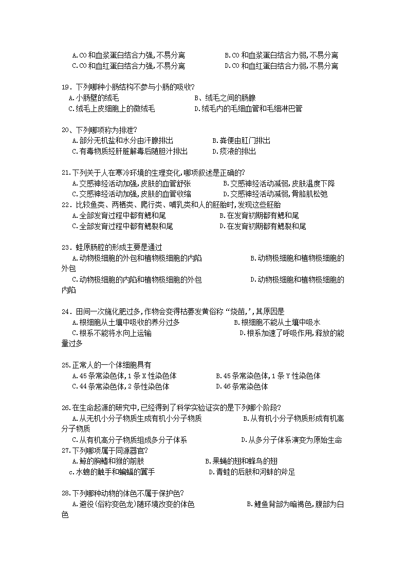 【文档预览】 无忧考网整理发布1991年重庆高考生物真题(Word版),前五页预览如下: