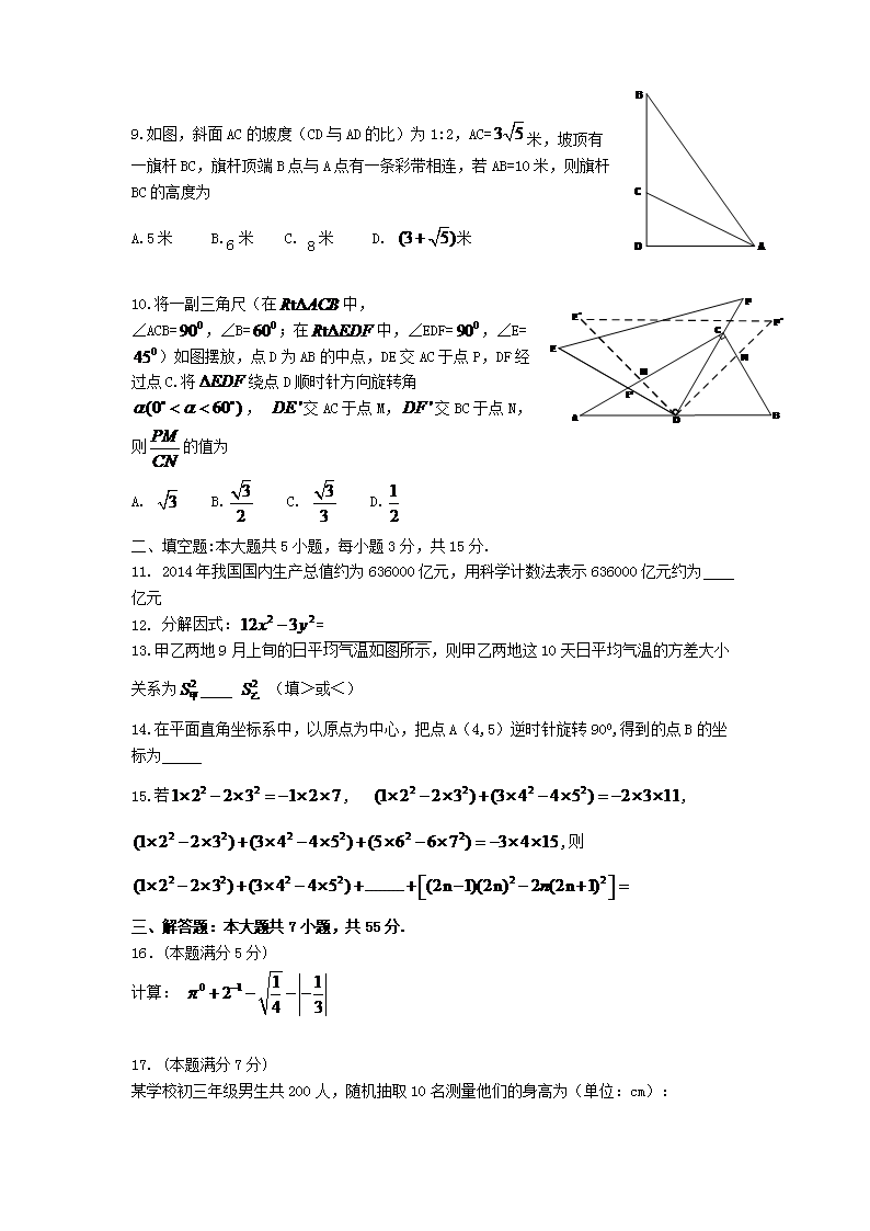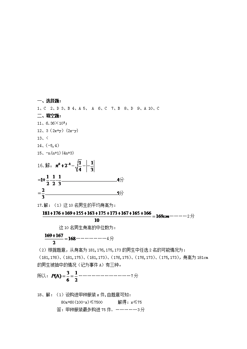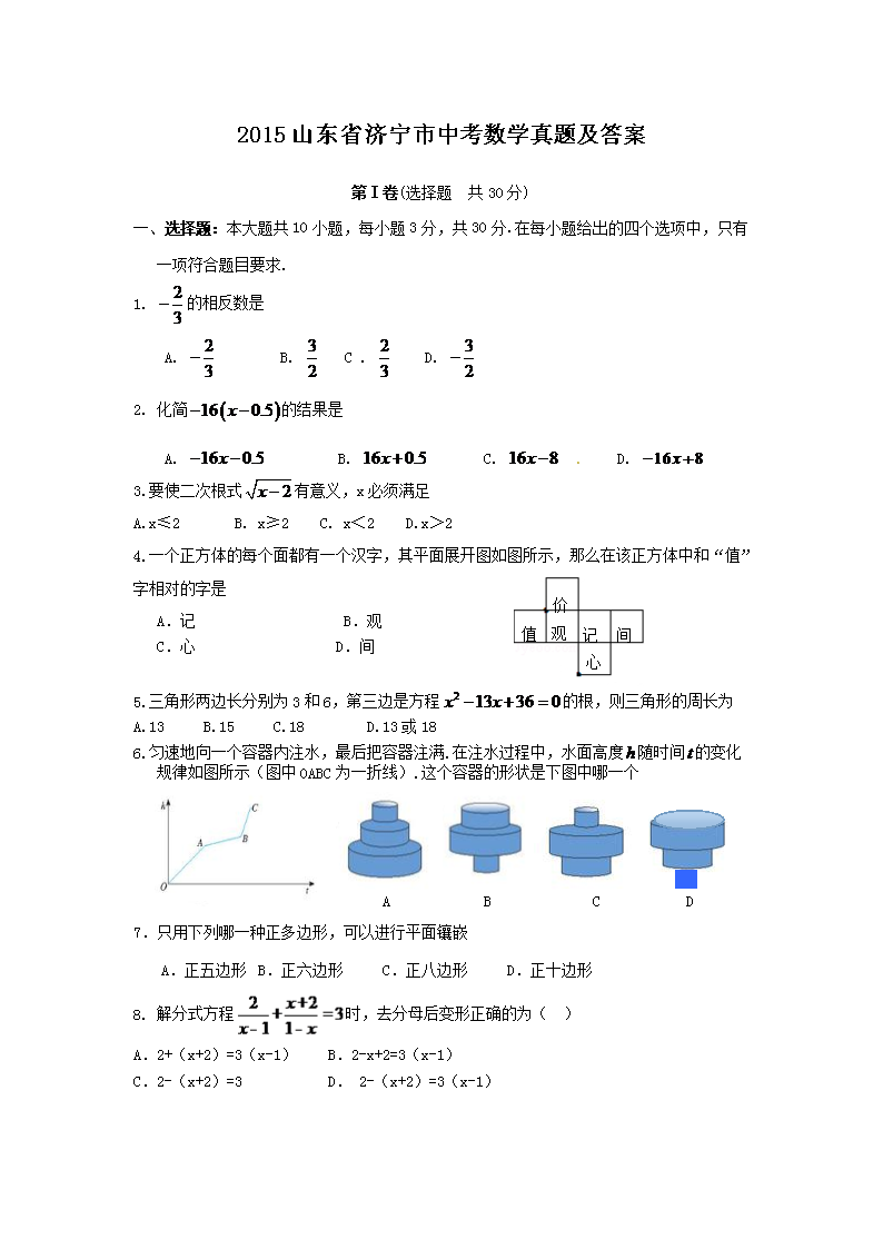 【文档名称】 2015山东省济宁市中考数学真题及答案(Word版).doc