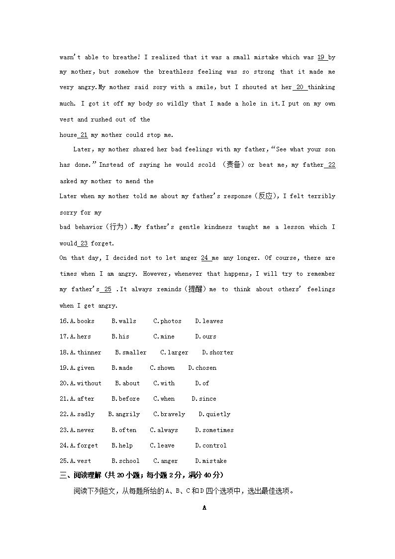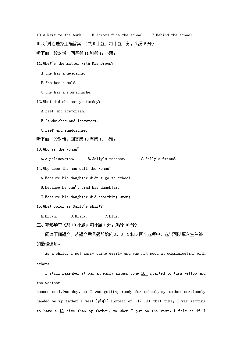 【文档预览】 无忧考网整理发布2019年宁夏固原中考英语真题及答案(Word版),前五页预览如下: