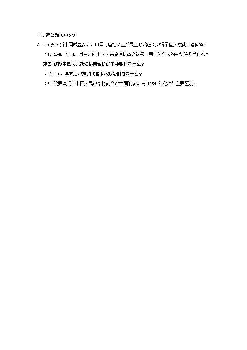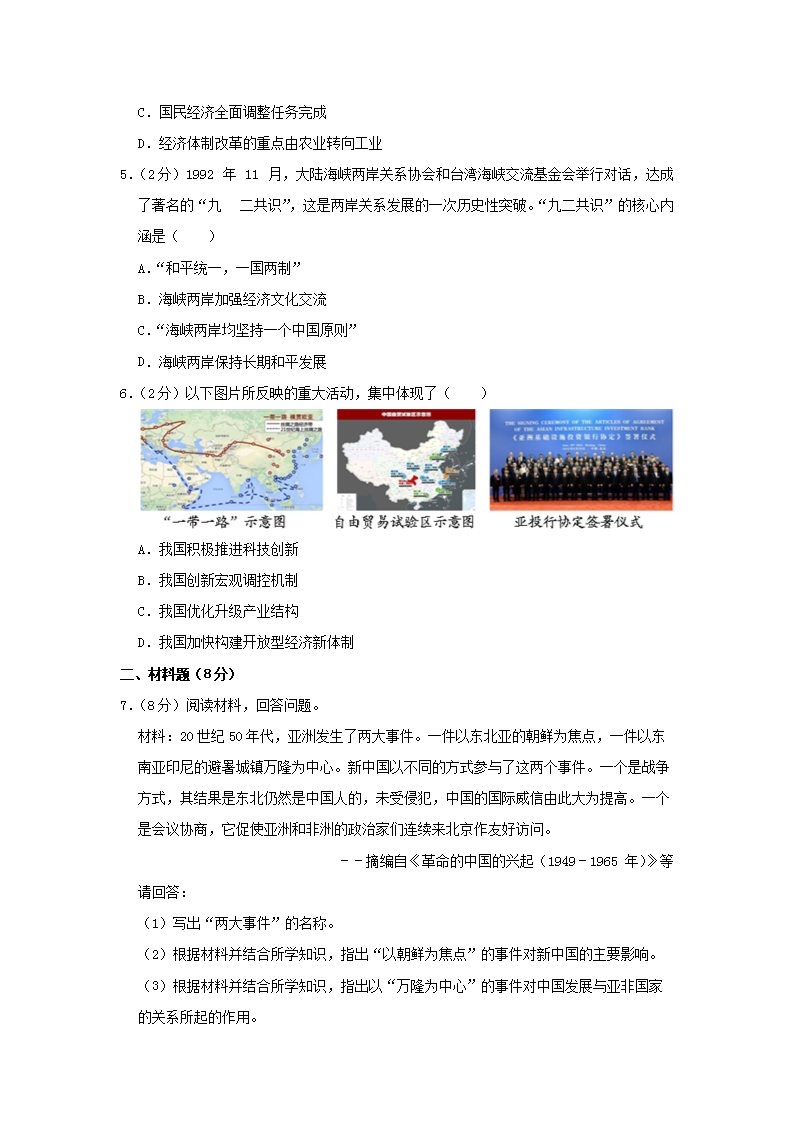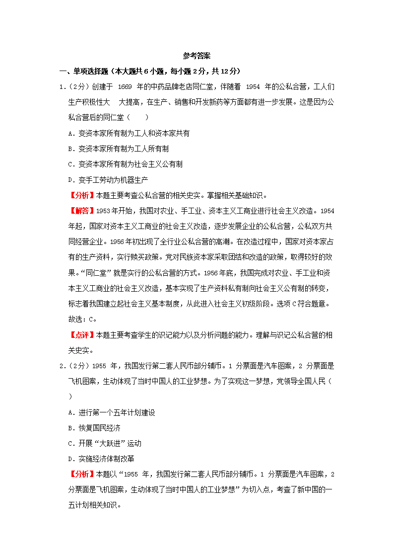 【文档名称】 2019年宁夏固原中考历史真题及答案(Word版).doc