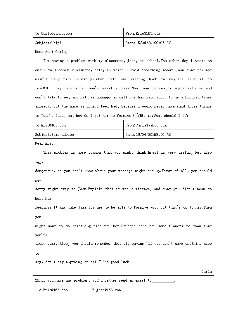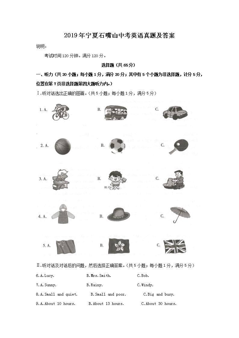 【文档预览】 无忧考网整理发布2019年宁夏石嘴山中考英语真题及答案(Word版),前五页预览如下: