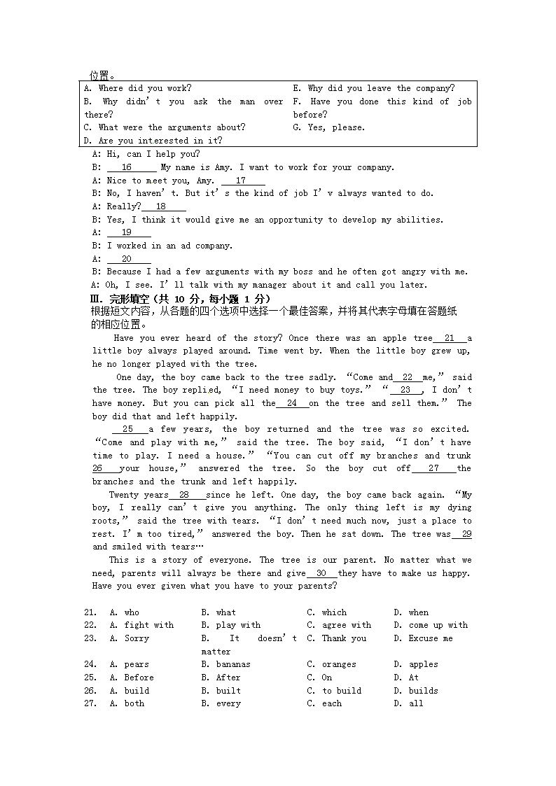 【文档预览】 无忧考网整理发布2012年辽宁省锦州市中考英语真题及答案(Word版),前五页预览如下: