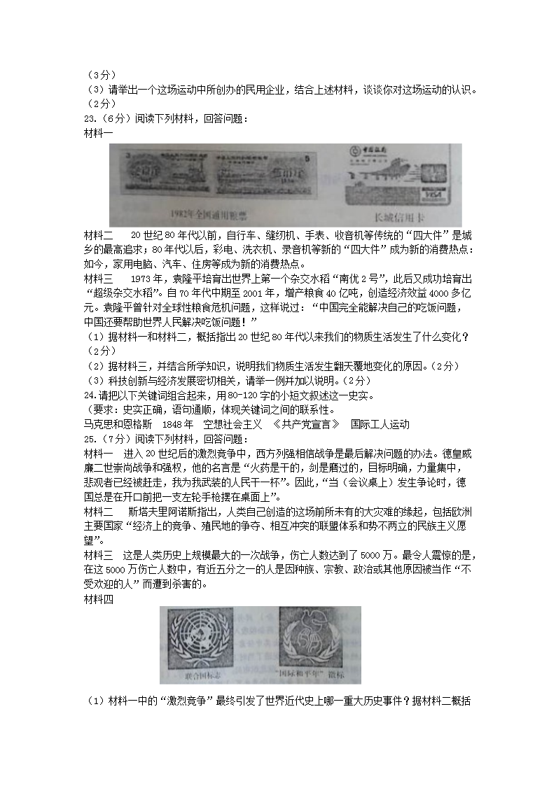 【文档名称】 2014年河南周口中考历史真题及答案(Word版).doc