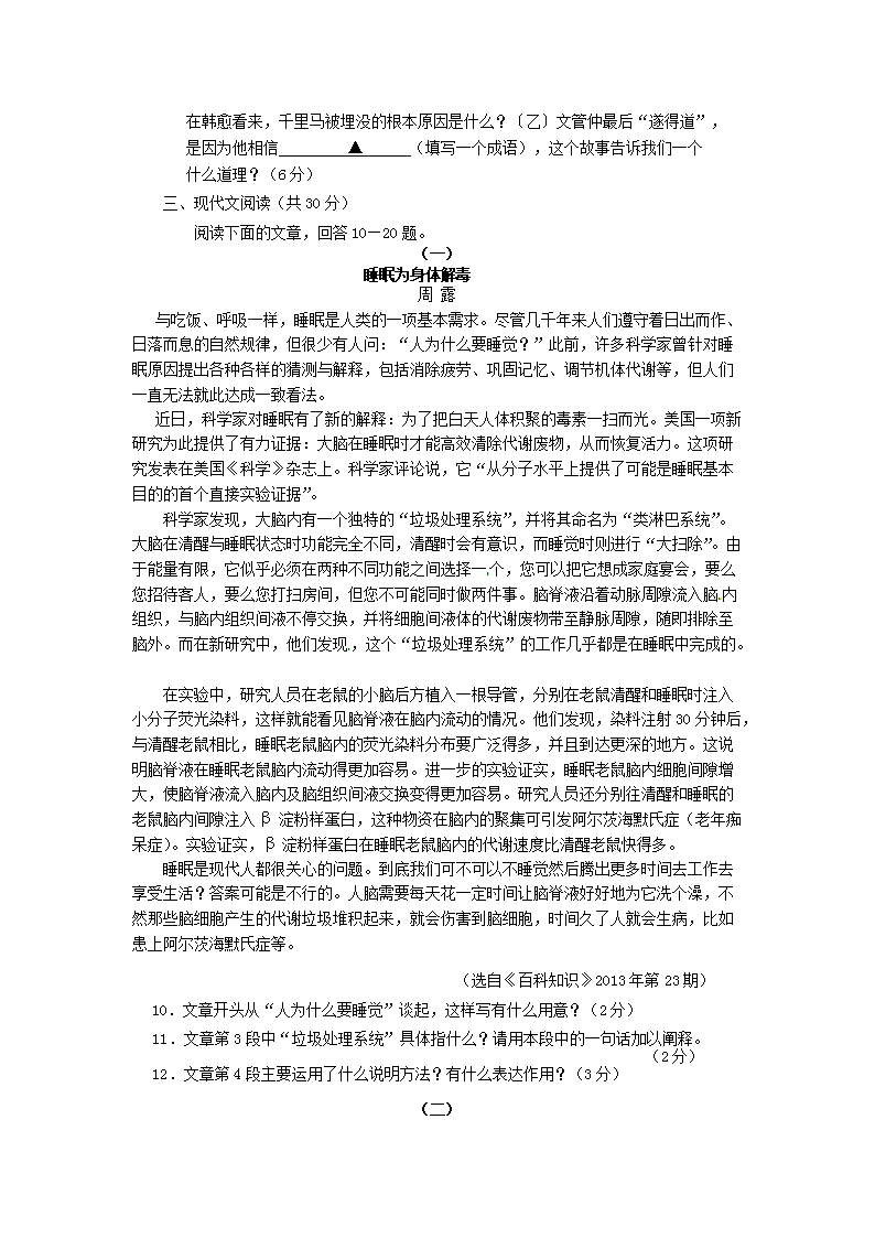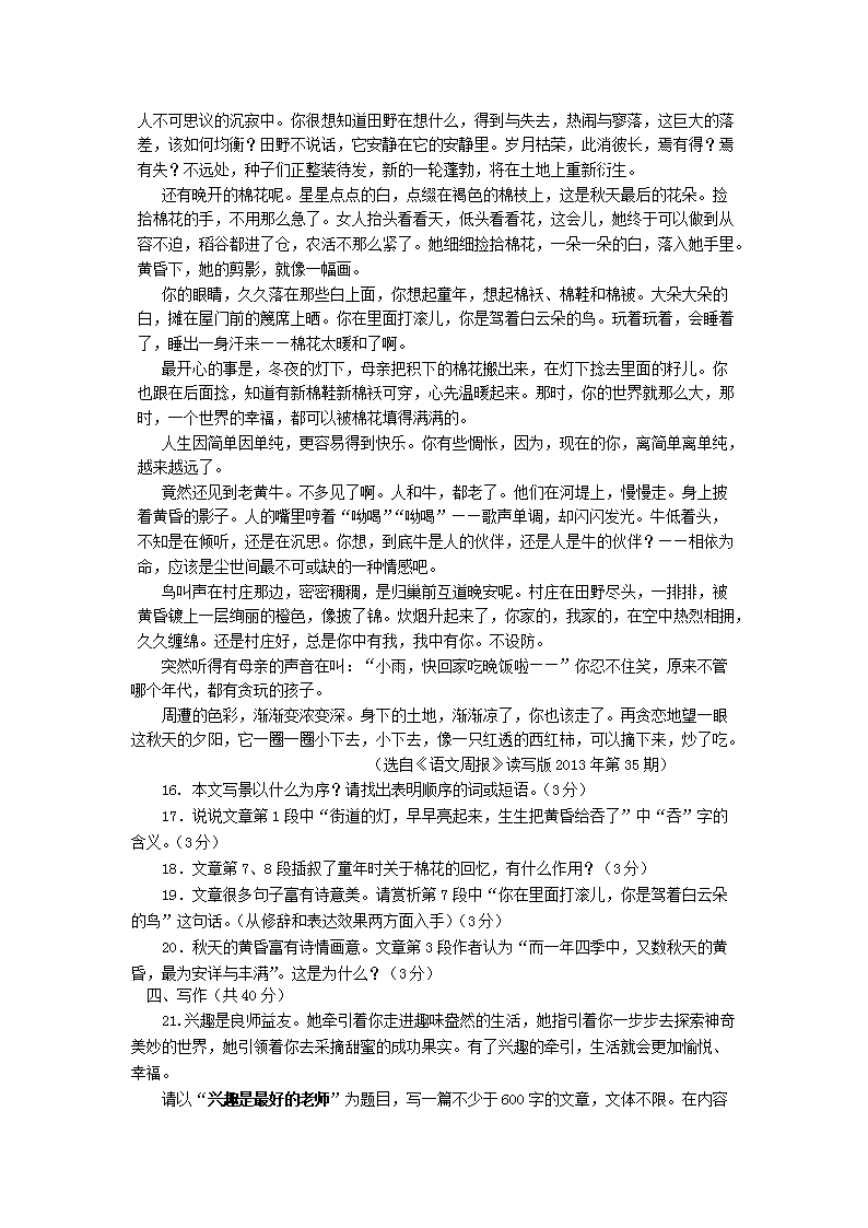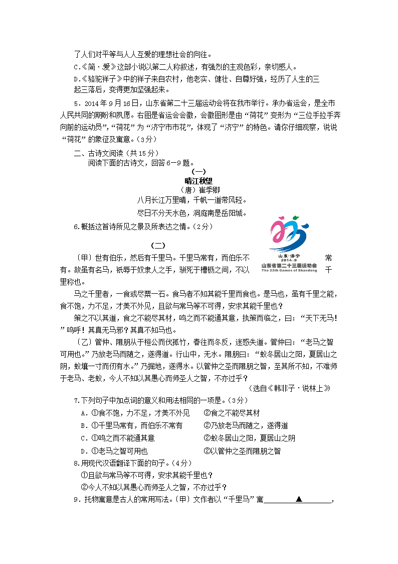 【文档名称】 2014山东省济宁市中考语文真题及答案(Word版).doc