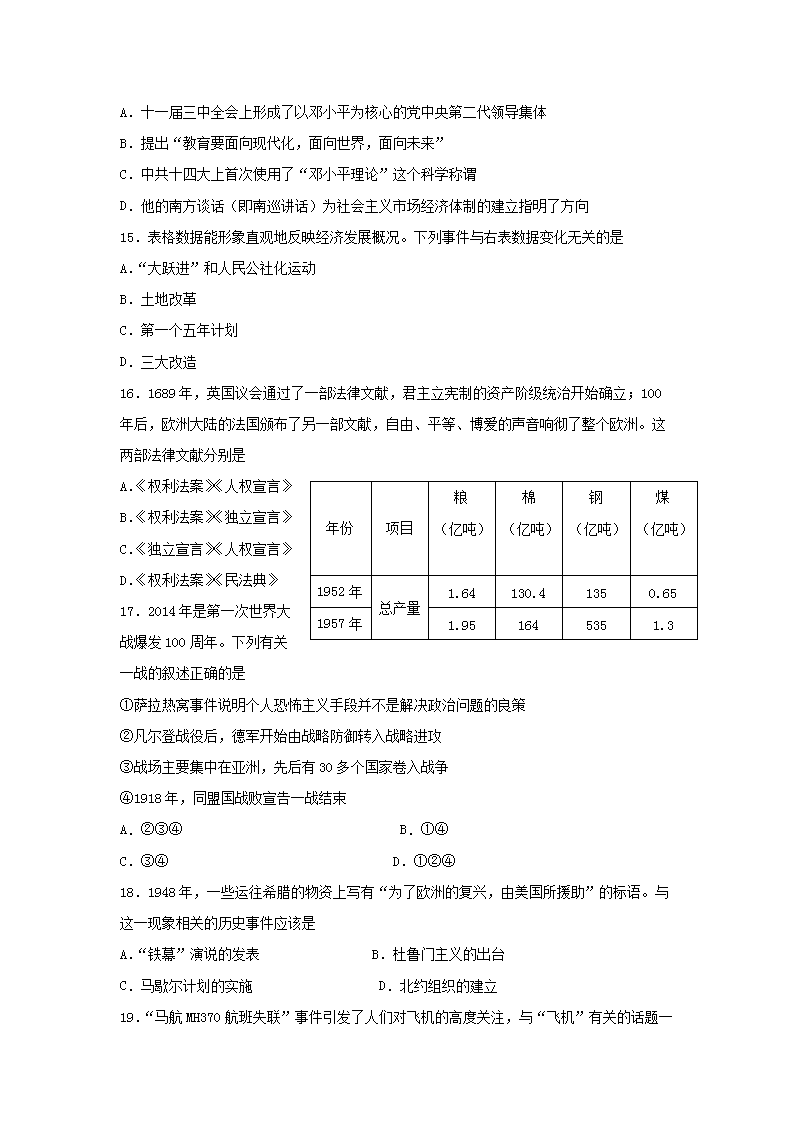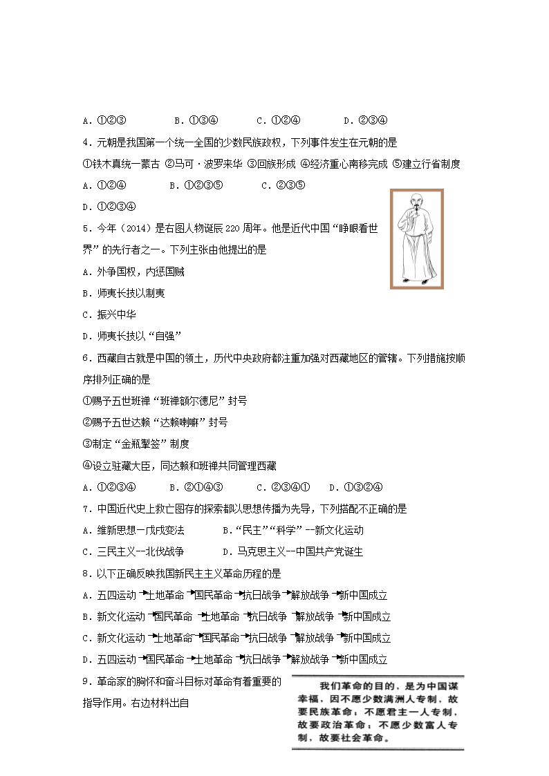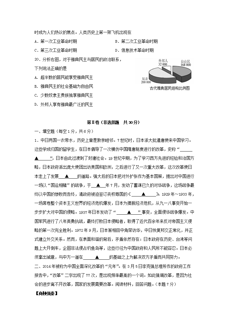 【文档名称】 2014山东省济宁市中考历史真题及答案(Word版).doc