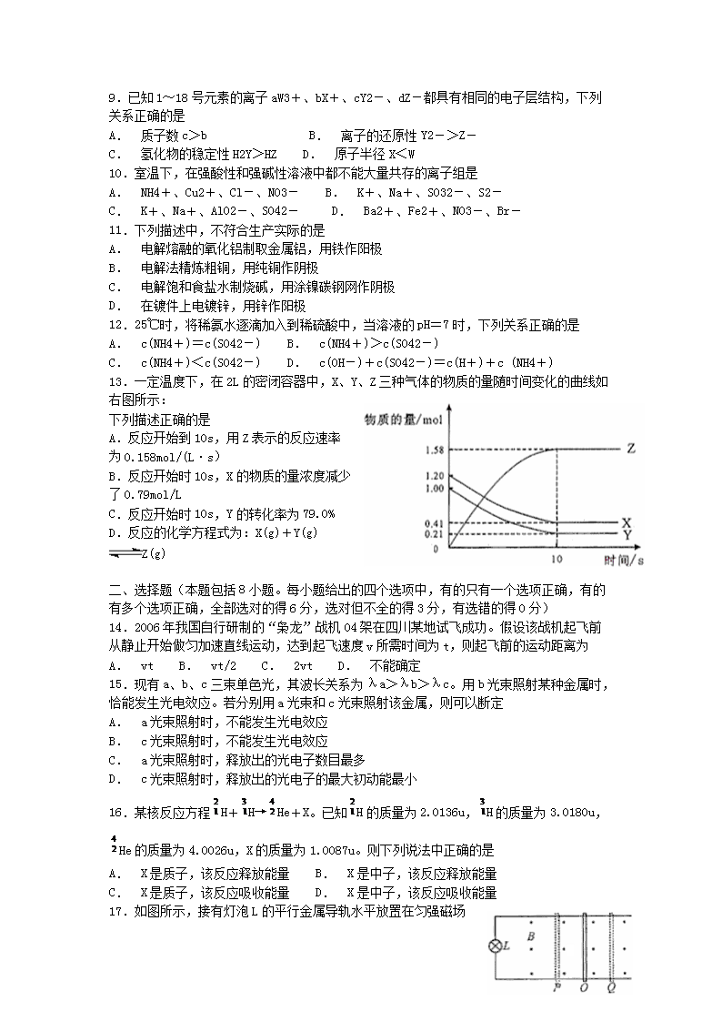 【文档名称】 2006年四川高考理综真题及答案(Word版).doc