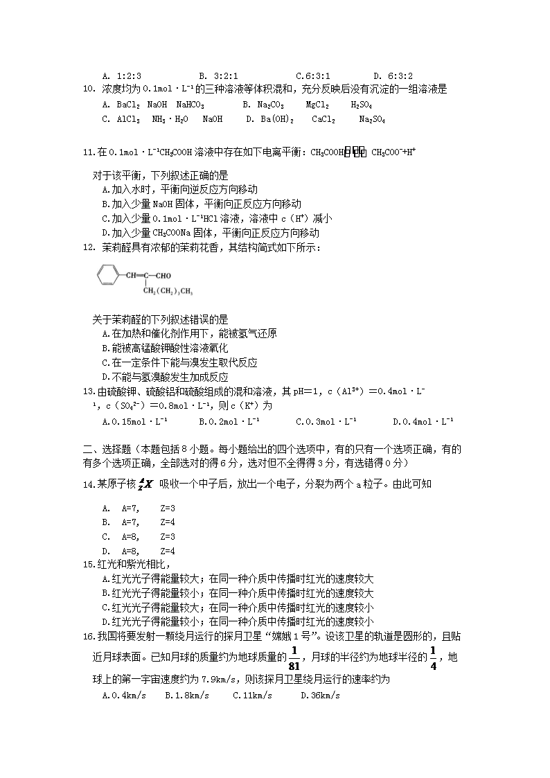 【文档预览】 无忧考网整理发布2006年山东高考理综真题及答案(Word版),前五页预览如下: