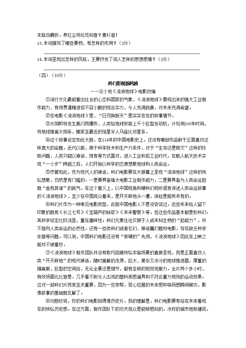 【文档名称】 2019年宁夏石嘴山中考语文真题及答案(Word版).doc