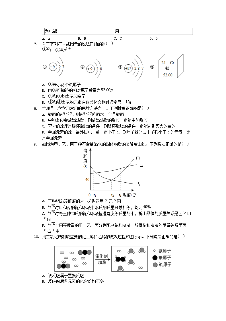 【文档名称】 2019年宁夏吴忠中考化学真题及答案(Word版).doc
