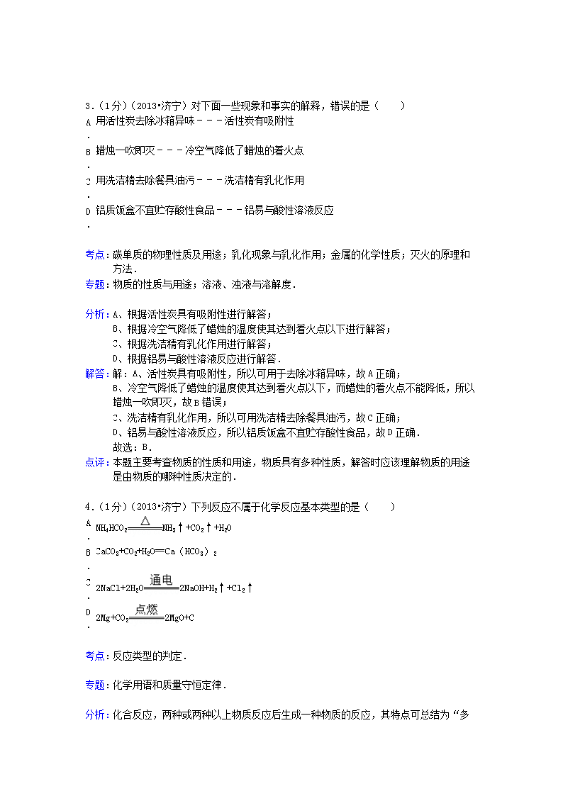 【文档预览】 无忧考网整理发布2013山东省济宁市中考化学真题及答案(Word版),前五页预览如下: