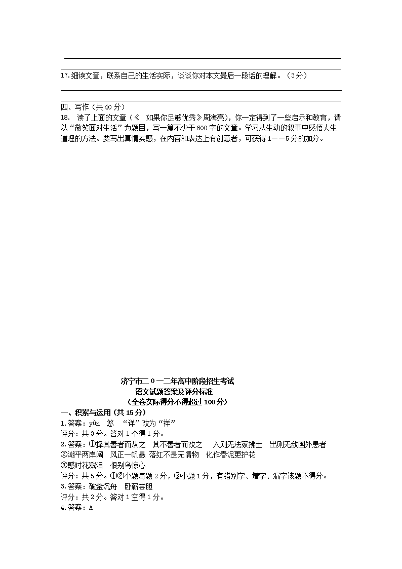【文档名称】 2012山东省济宁市中考语文真题及答案(Word版).doc