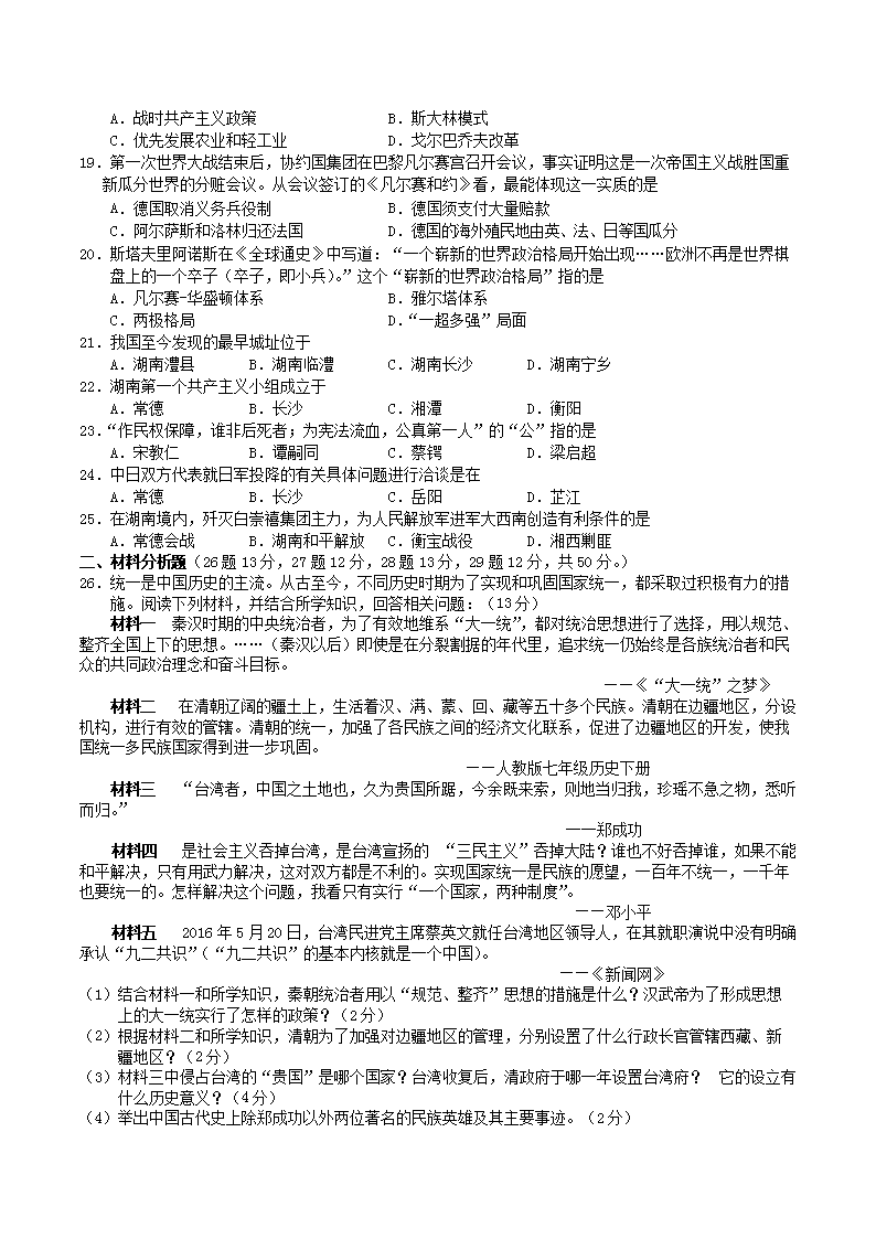 【文档名称】 2016年湖南省常德市中考历史真题及答案(Word版).doc