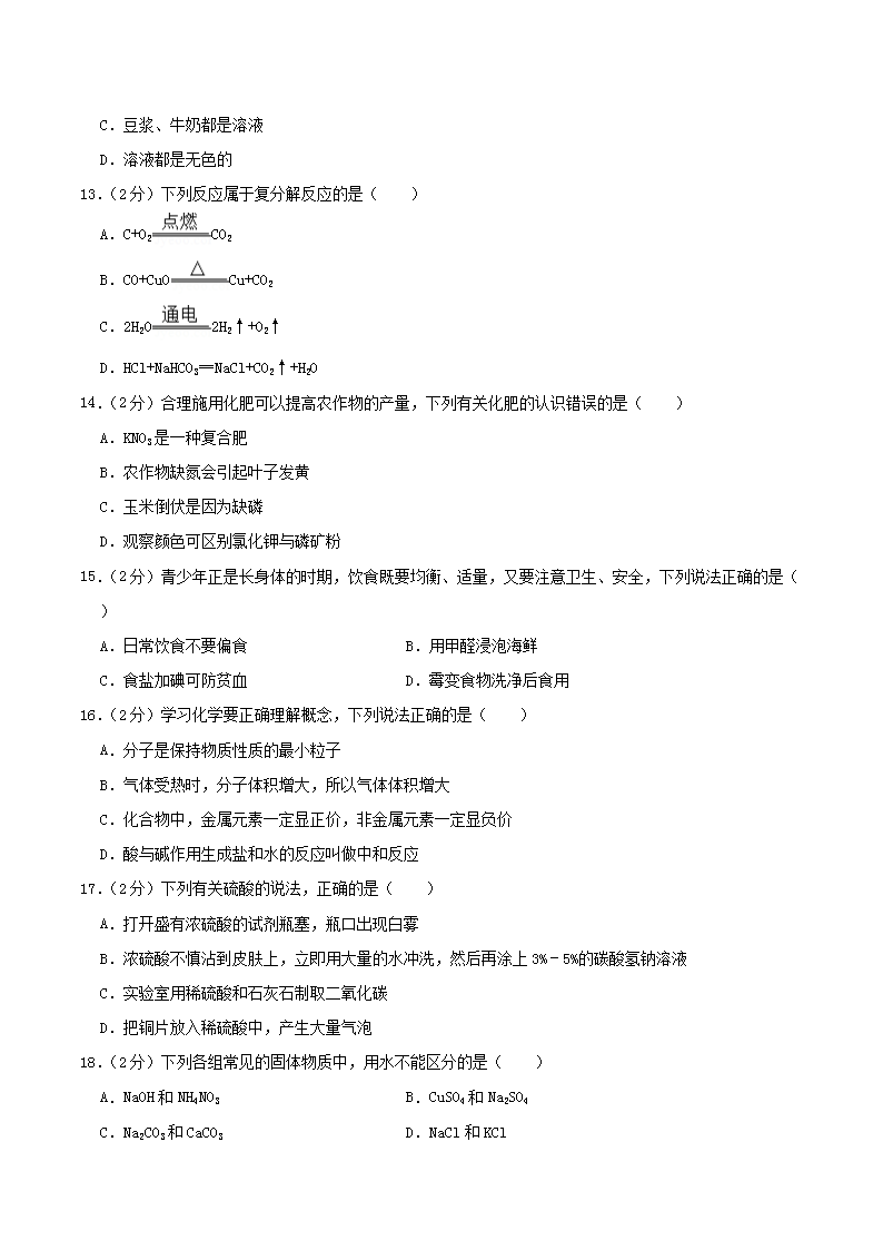 【文档名称】 2016年湖南省郴州市中考化学真题及答案(Word版).doc