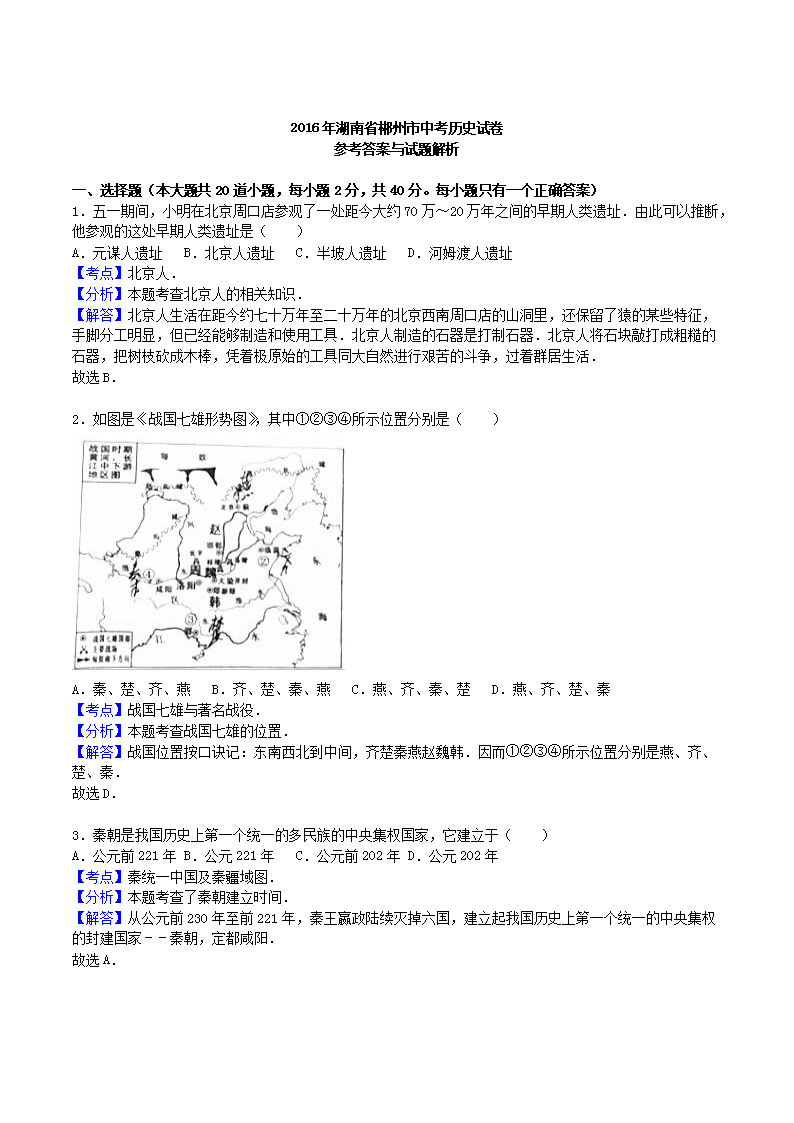 【文档预览】 无忧考网整理发布2016年湖南省郴州市中考历史真题及答案(Word版),前五页预览如下: