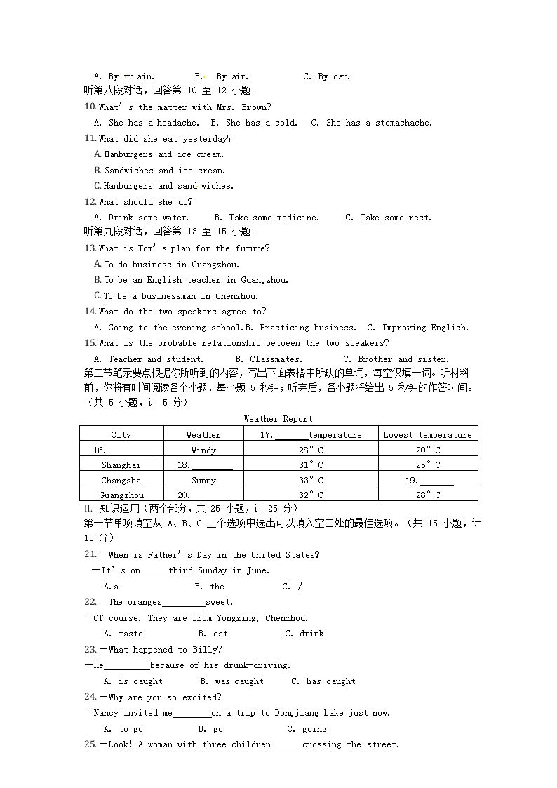 【文档名称】 2016年湖南省郴州市中考英语真题及答案(Word版).doc