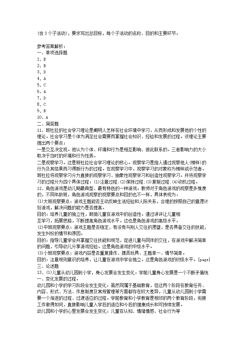 【文档名称】 2015上半年山东教师资格考试幼儿保教知识与能力真题及答案(Word版).doc