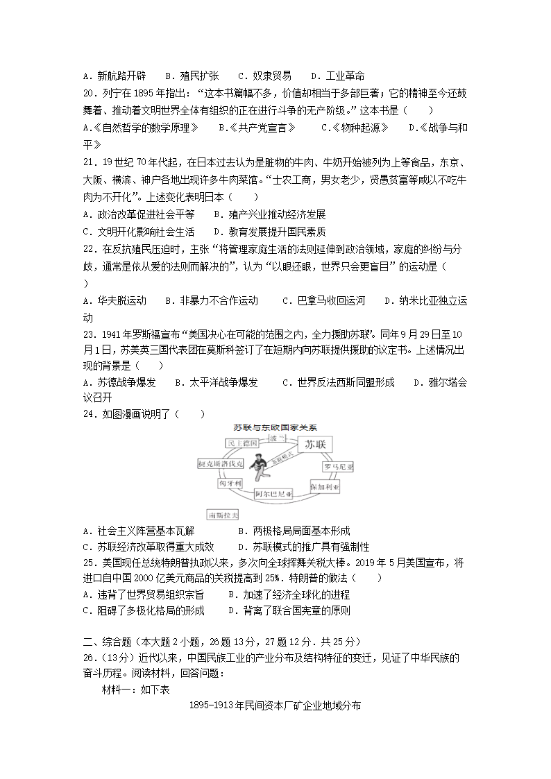 【文档名称】 2019年广东省中山市中考历史真题及答案(Word版).doc
