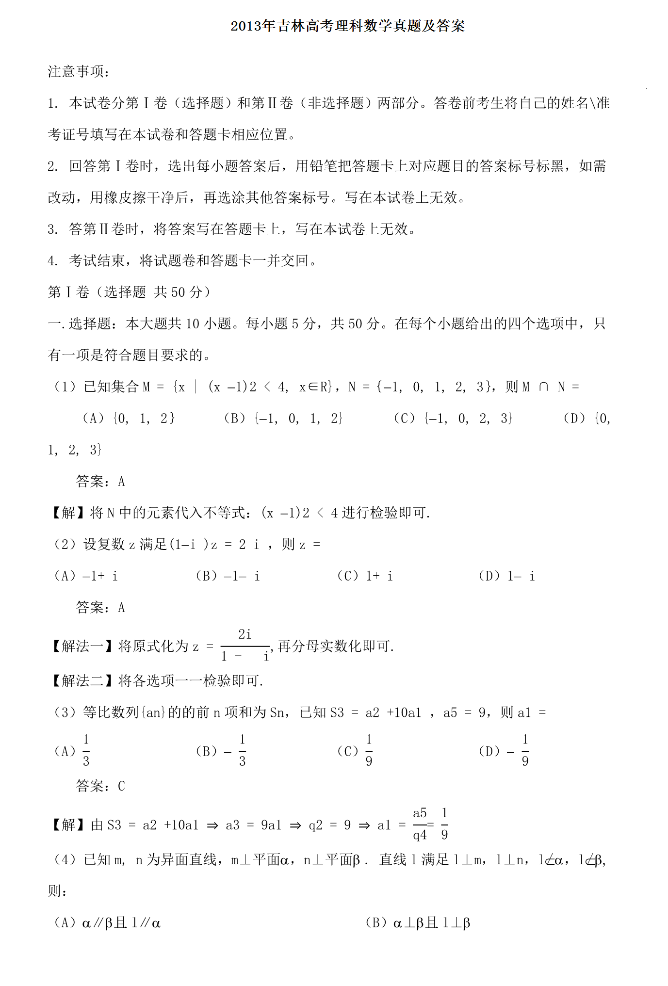 【文档名称】 2013年吉林高考理科数学真题及答案(Word版).doc