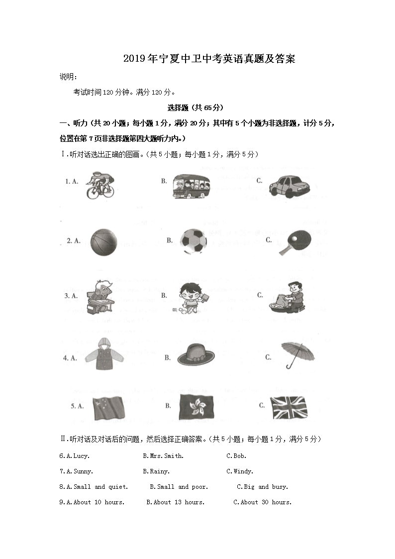 【文档名称】 2019年宁夏中卫中考英语真题及答案(Word版).doc