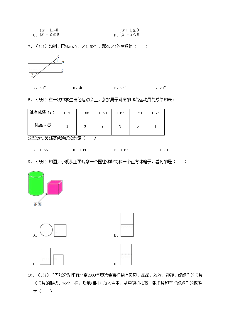 【文档预览】 无忧考网整理发布2009年西藏中考数学真题及答案(Word版),前五页预览如下: