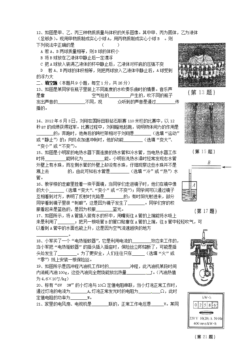 【文档预览】 无忧考网整理发布2012年辽宁省铁岭市中考物理真题及答案(Word版),前五页预览如下: