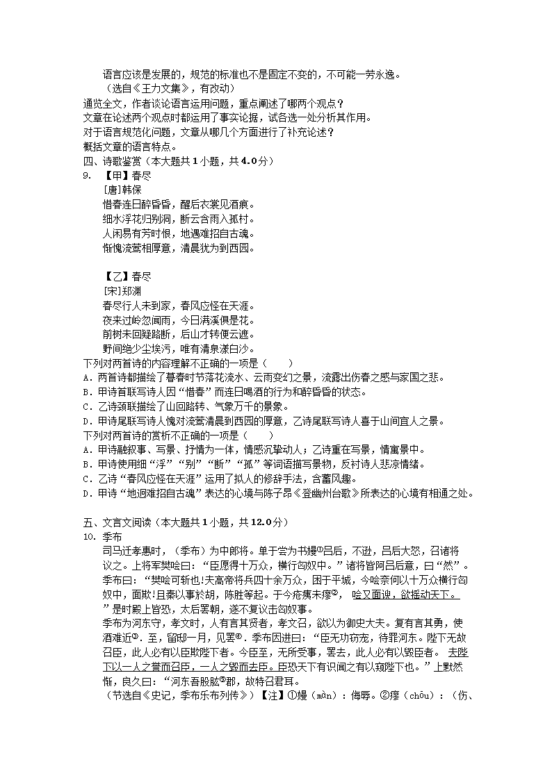 【文档名称】 2019年江西抚州中考语文真题及答案(Word版).doc