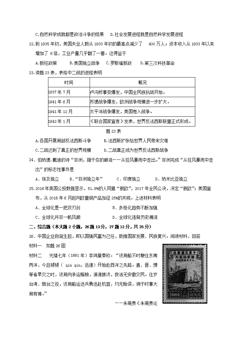 【文档名称】 2018年广东省茂名市中考历史试题与答案(Word版).doc