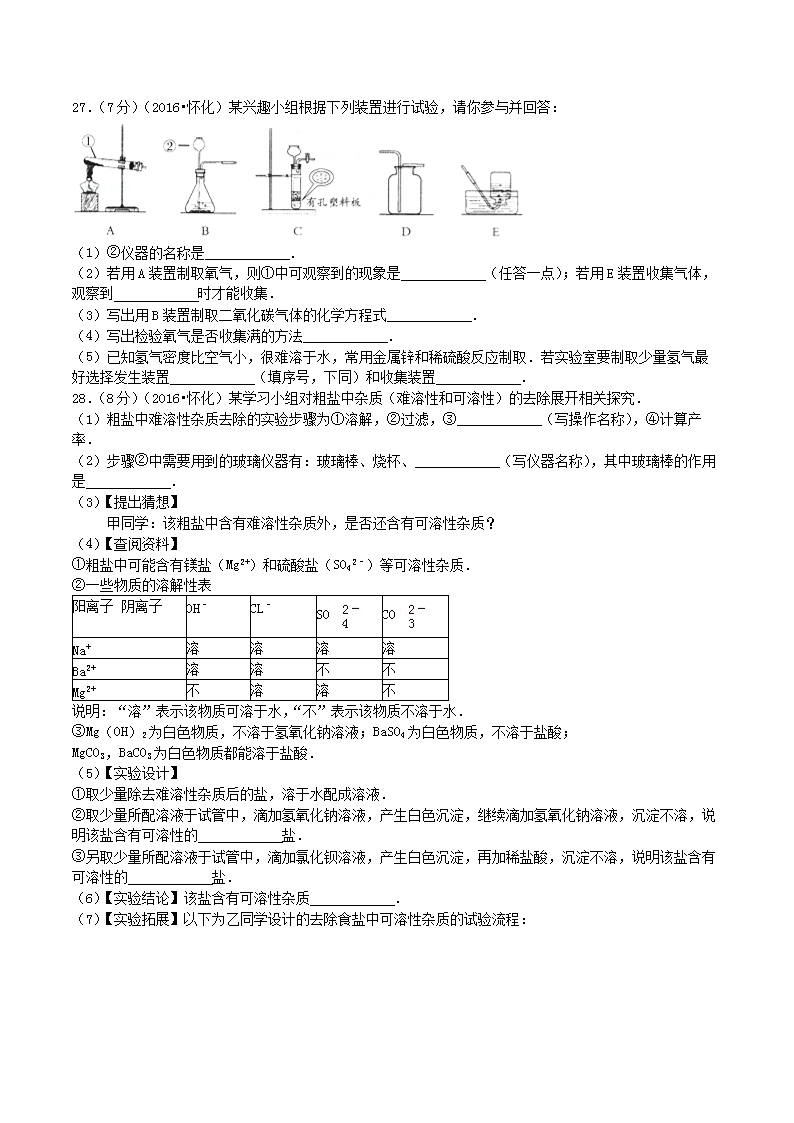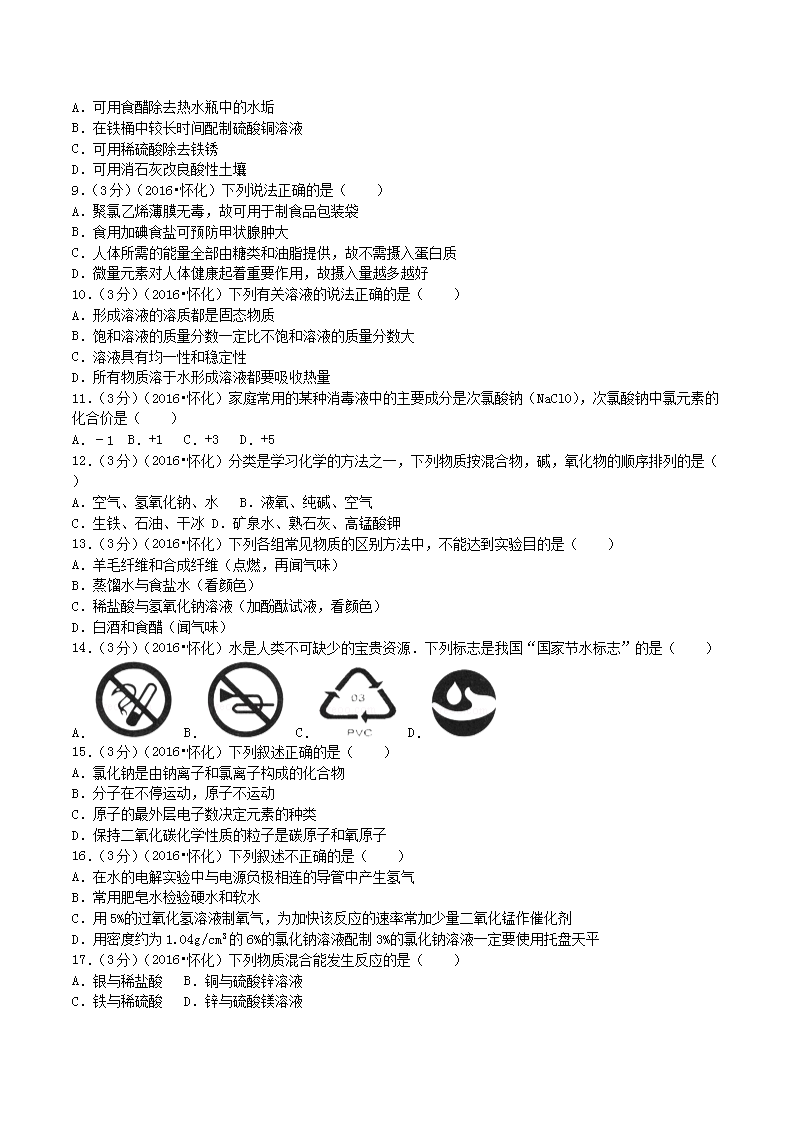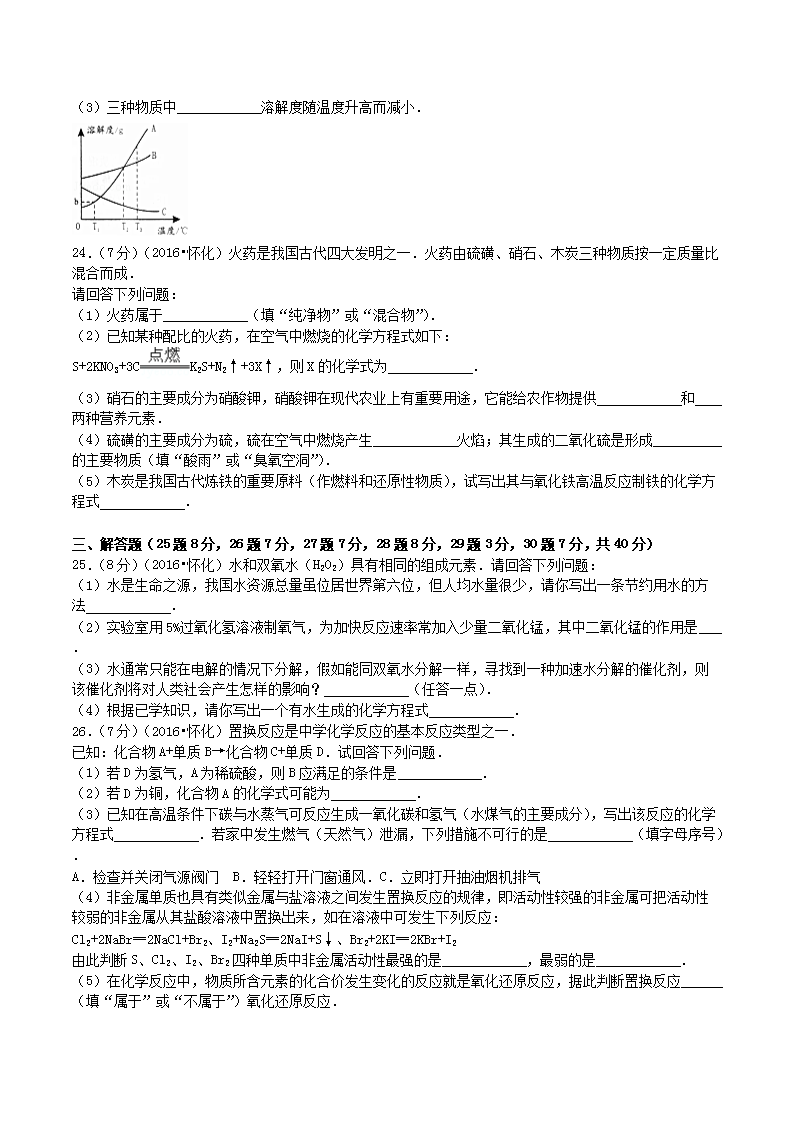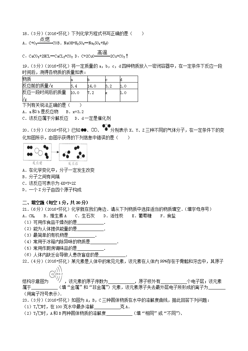 【文档名称】 2016年湖南省怀化市中考化学真题及答案(Word版).doc