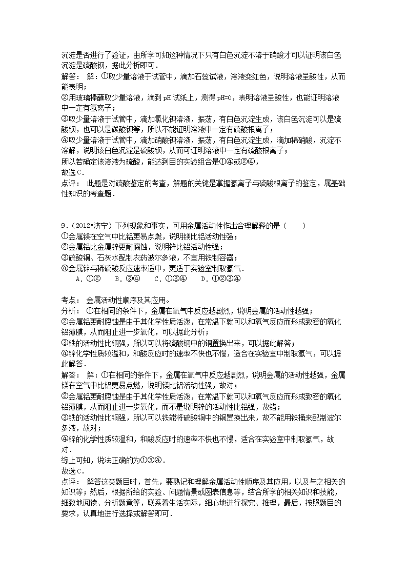 【文档预览】 无忧考网整理发布2012山东省济宁市中考化学真题及答案(Word版),前五页预览如下: