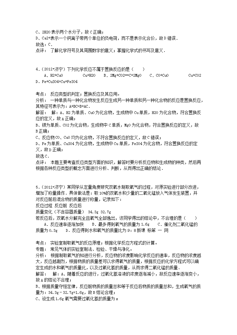 【文档名称】 2012山东省济宁市中考化学真题及答案(Word版).doc