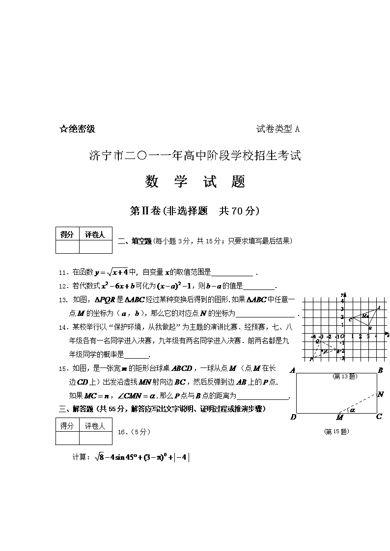 【文档名称】 2011山东省济宁市中考数学真题及答案(Word版).doc
