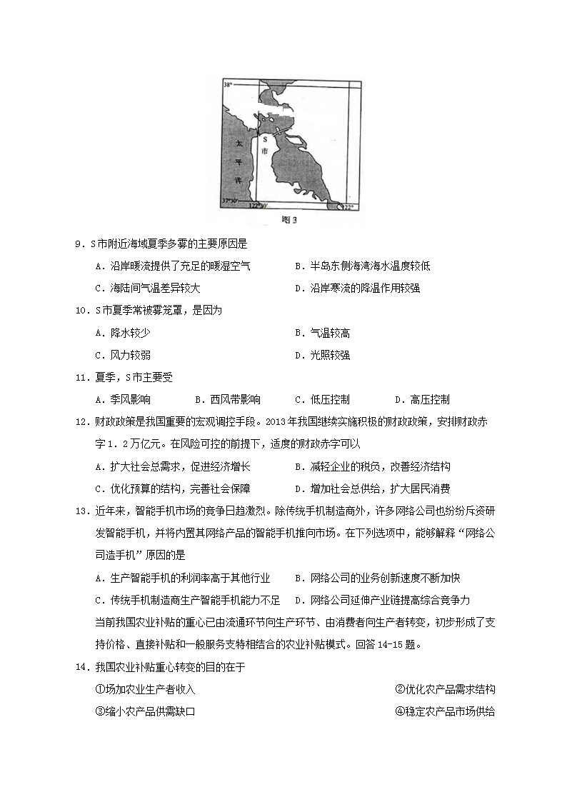 【文档名称】 2013年宁夏高考文综真题及答案(Word版).doc