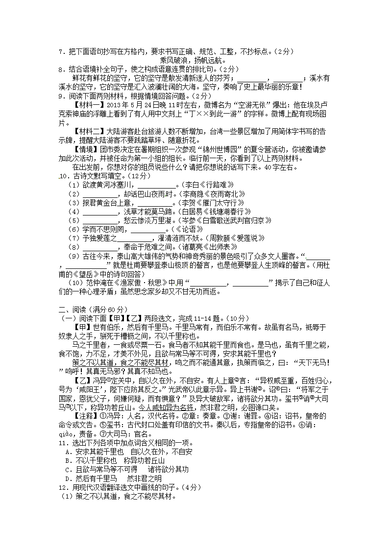 【文档名称】 2013年辽宁省本溪市中考语文真题及答案(Word版).doc
