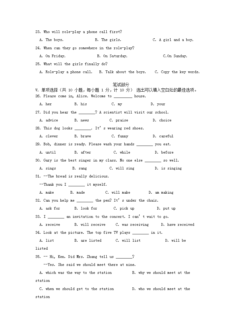 【文档名称】 2018年河北省保定市中考英语真题及答案(Word版).doc