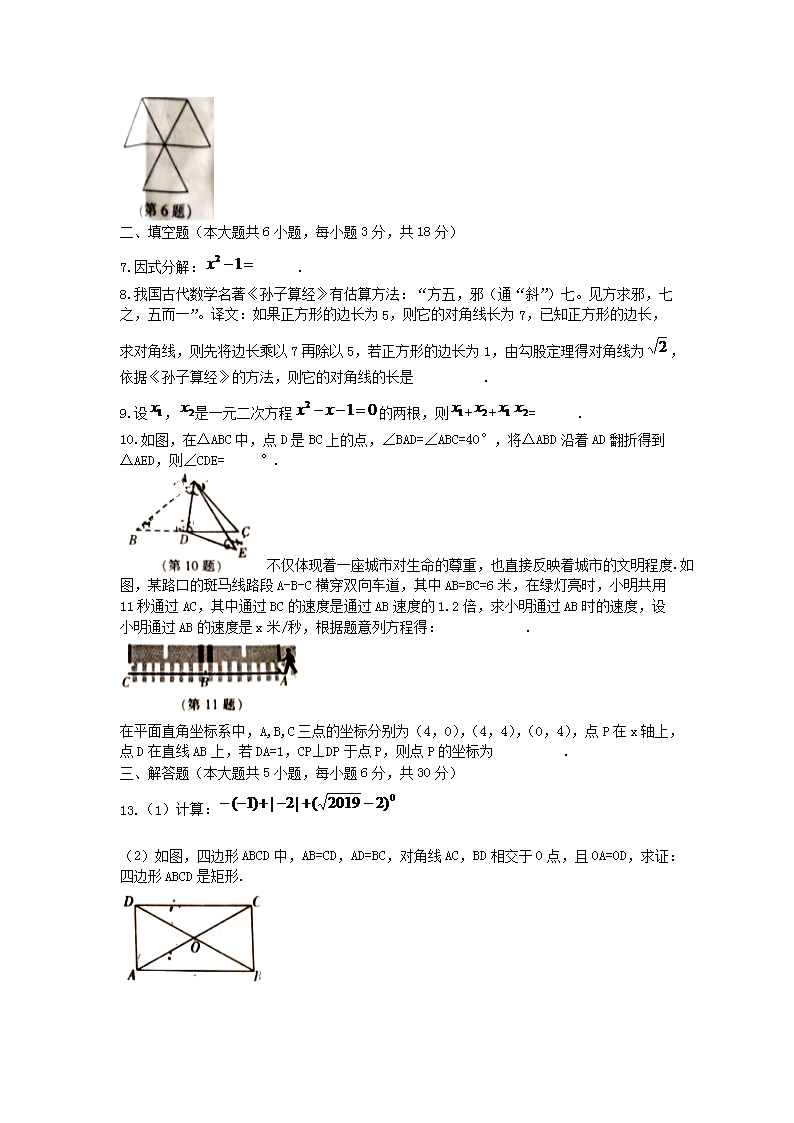 【文档名称】 2019年江西宜春中考数学真题及答案(Word版).doc